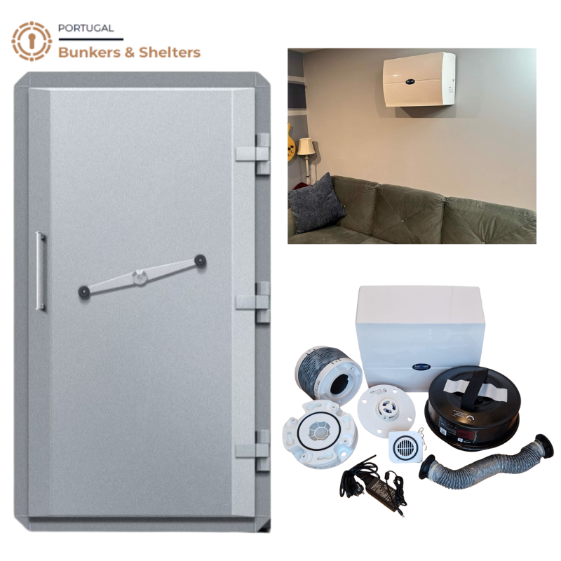 Solução CBRN destinada à adaptação de espaços já construídos, permitindo transformar uma divisão existente num compartimento protegido contra agentes químicos, biológicos, radiológicos e nucleares. O kit combina controlo de acessos estanque e resistente a explosão com filtragem ativa e criação de sobrepressão, assegurando proteção do espaço interior em cenários de contaminação exterior.